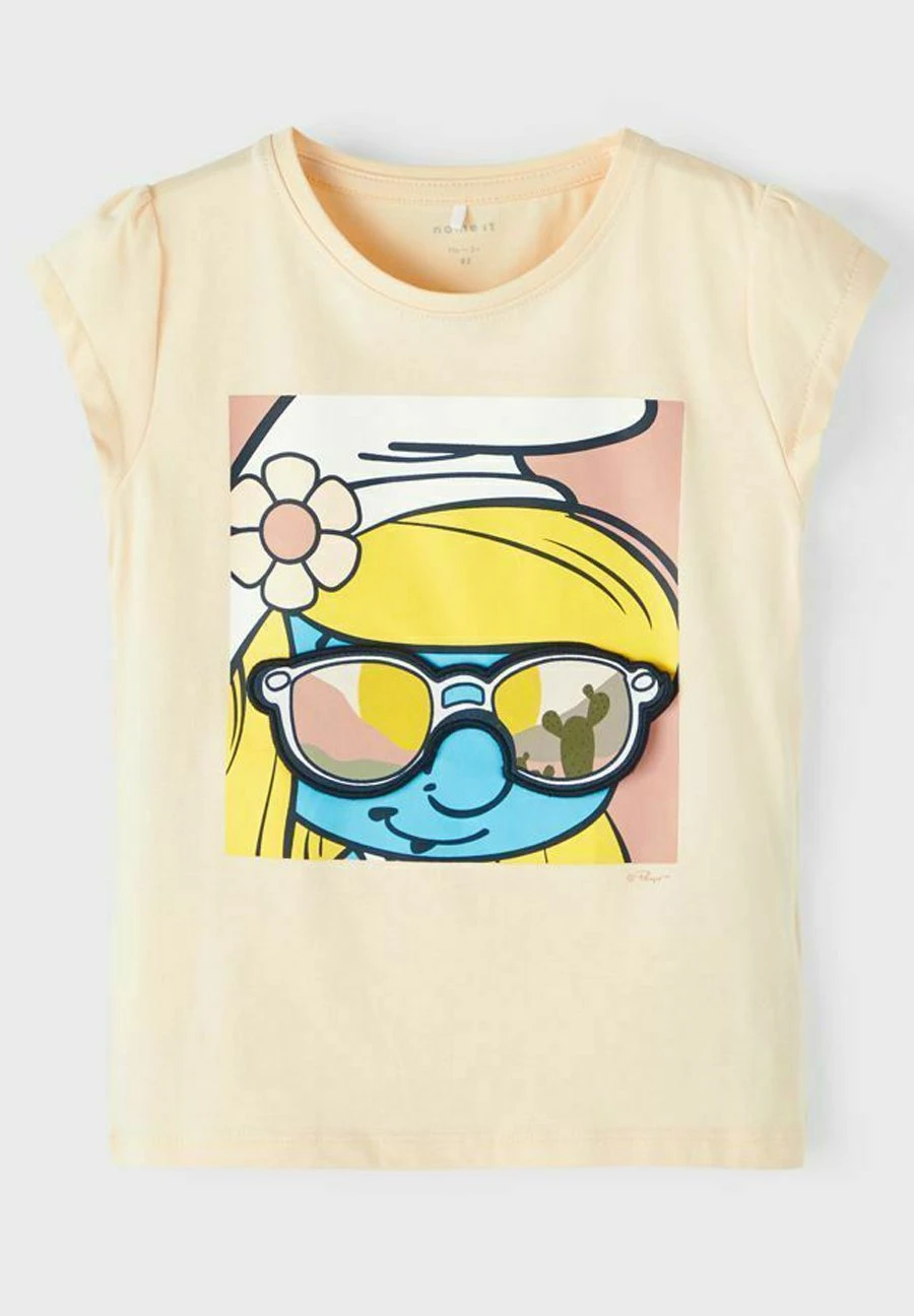 NAME IT Nmfani Smurfs Ss Vde – T-Shirt Print – Créme De Pêche